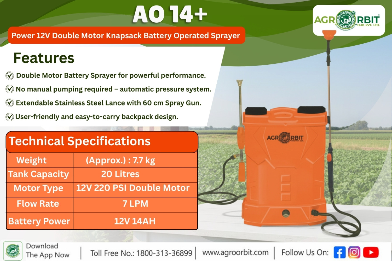 This Power 12V Double Motor Knapsack Battery Operated Sprayer is perfect for those who need to do spraying.This Sprayer have multiple applications, and are widely used in agriculture, horticulture, sericulture, plantations, forestry, gardens etc.