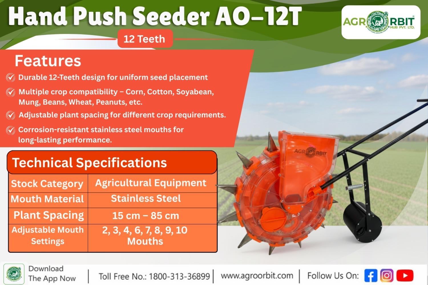 Applicable Crop :- Corn, Cotton, Soyabeans, Mung Beans, Beans, wheat, Peanuts, Etc.